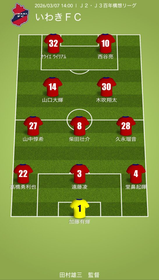 アウェイいわきFC戦のフォーメーションを予想しました。