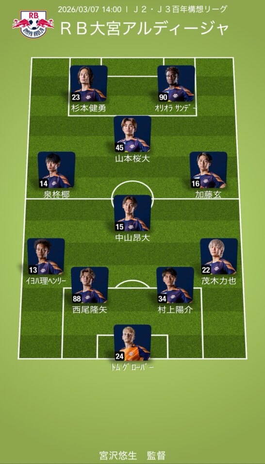 RB大宮アルディージャ・予想スタメン