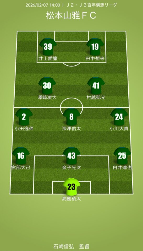 松本山雅FC・予想スタメン