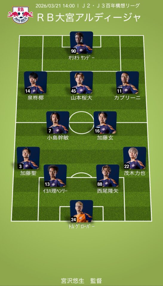 RB大宮アルディージャ・予想スタメン