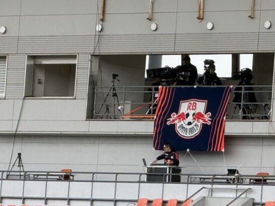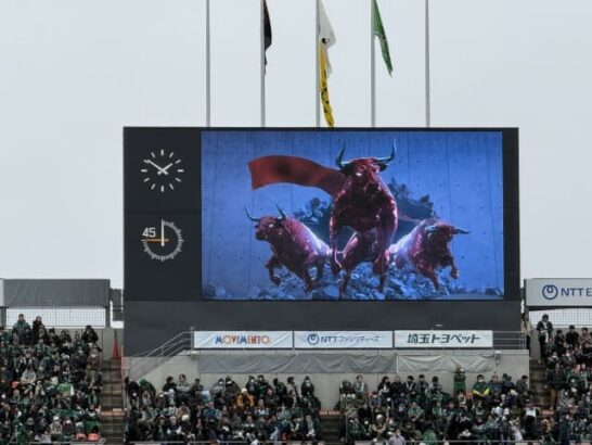 赤牛と後ろ2人の若者だけ声出ししてて浮いているという謎の状況…寒さが原因ならいいけどサポの高齢化は否めない…