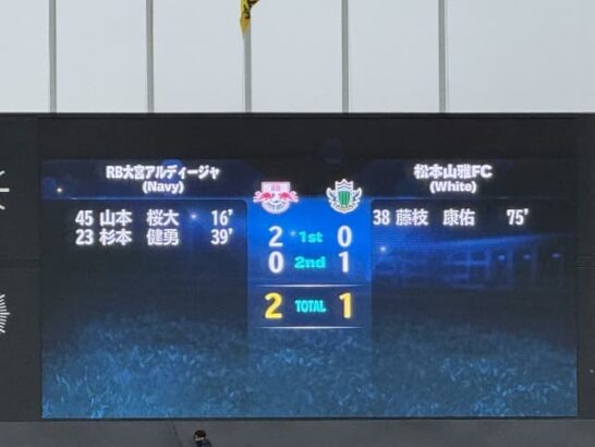 前半は相手にチャンスを与えず、2ゴールをあげて完勝の勢い。しかし後半は対策されたのか、疲れたのか松本のペースに一変。選手交代も効かずにカウンターから失点と、千葉戦の悪夢が頭をよぎりましたが…、なんとか逃げ切りました。