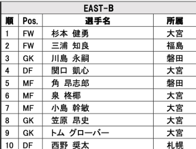 なんとキングカズ、かつての日本代表守護神:川島選手を抑えての1位! その下も関口、泉、小島、笠原、そしてトムまでもがランクインと大宮尽くし!
