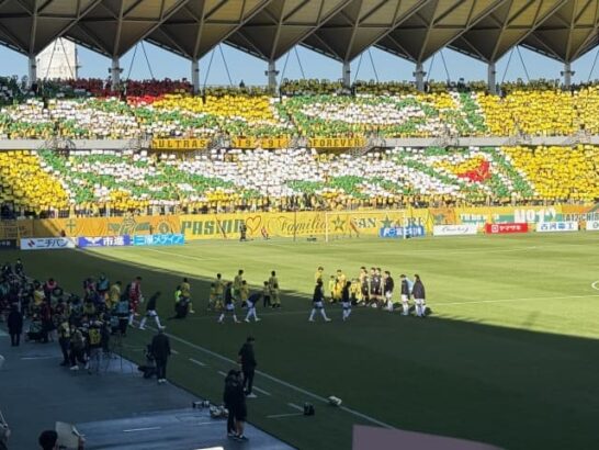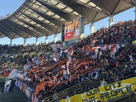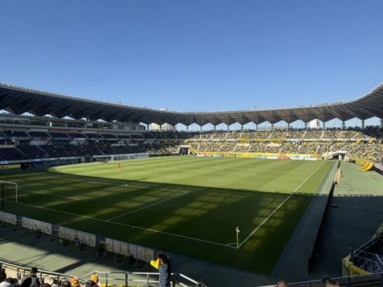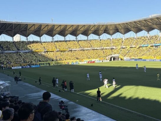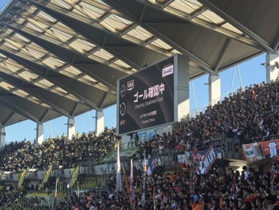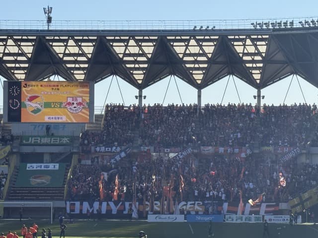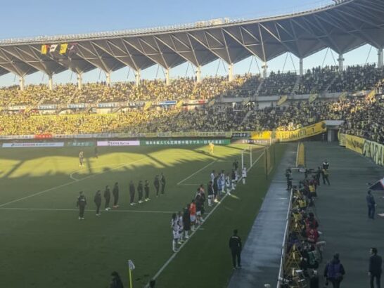 そもそも開始から怒涛の攻撃で辛うじて守る展開。最初のCKが決まって優位に試合を進めましたが、前半の時点で普通にリードされていて全くおかしくなく、後半に年間3位の力を見せつけられました…。素晴らしいスタジアムに素晴らしいサポーターに素晴らしい選手とスタッフ。秋春制に変わるJリーグ、なんとしてもオリジナル10としてJ1昇格してください。